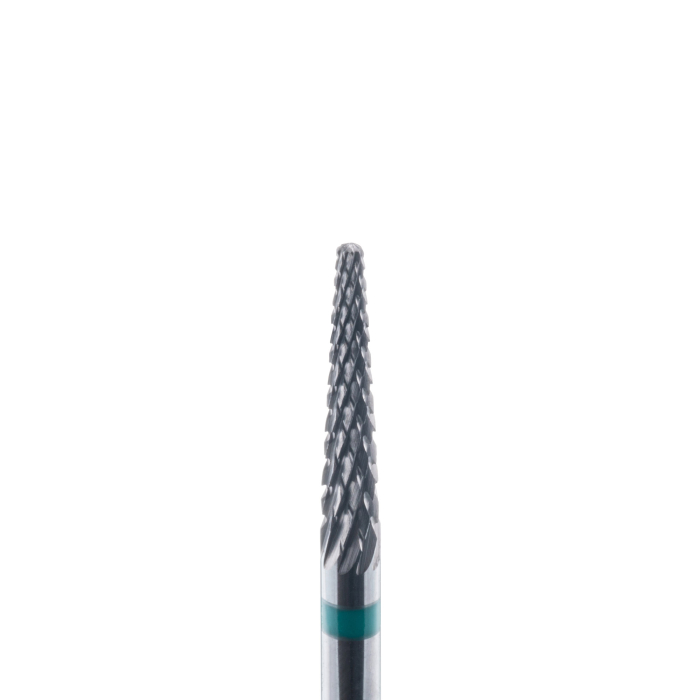 Bit din carbid de tungsten – puternic, in forma de con mic, cu crestaturi fine transversale. Conceput atat pentru utilizare umeda, cat si uscata. Perfect pentru indepartarea masei reziduale de la nivelul tijei unghiilor. De asemenea, este potrivit pentru tratamente podologice – netezirea unghiilor keratinizate, tratarea bataturilor unghiilor, precum si a pielii groase de la nivelul tijei unghiilor.
