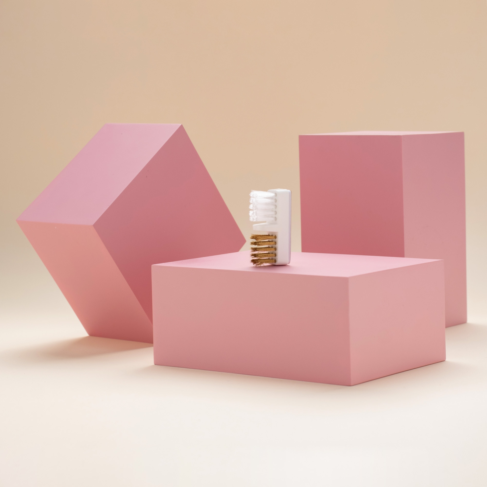 Perie din nailon si cupru utilizata pentru curatarea uneltelor de unghii. Peria are doua zone de lucru - una cu peri metalici, cealalta cu peri tari. Ambele tipuri faciliteaza curatarea frezelor de praf și reziduuri de material. Baza adeziva va permite sa fixati peria pe orice suprafata. Trebuie doar sa indepartati protectia partii adezive si sa lipiti peria. Acest lucru permite periei sa stea singura in timpul lucrului si sa nu se miste. Dimensiuni: 4,4 x 2,2 cm