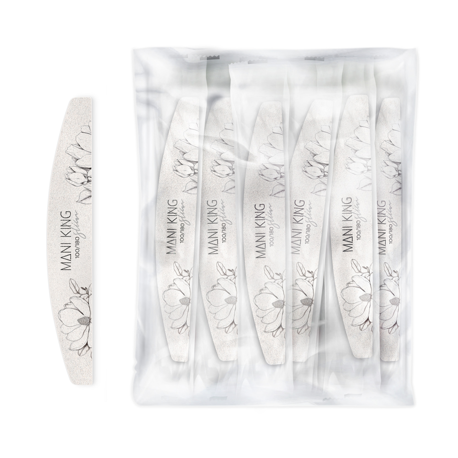 Pila de unghii profesionala FLORA Slim in forma de semiluna este alegerea perfecta pentru stilistii de unghii si pentru cei care apreciaza accesoriile de manichiura de inalta calitate. Pila de unghii 100/180 este conceputa pentru o lucrare precisa si eficienta cu produse pentru unghii cu gel, acrilic si hibrid.